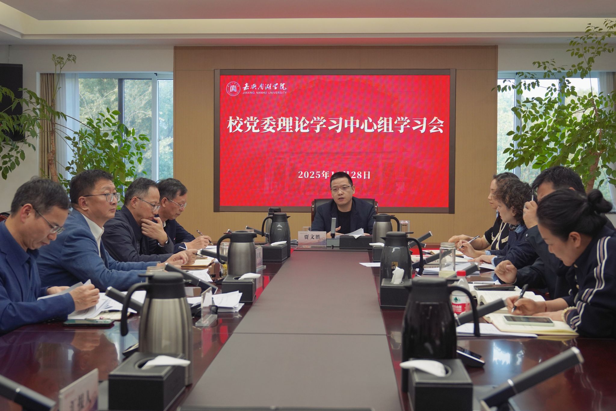 10月28日下午,校党委理论学习中心组在行政楼316会议室举行学习会,专题学习研讨《习近平谈治国理政》第五卷。校长、党委副书记贾文胜主持会议并讲话,校党委理论学习中心组成员参加会议。